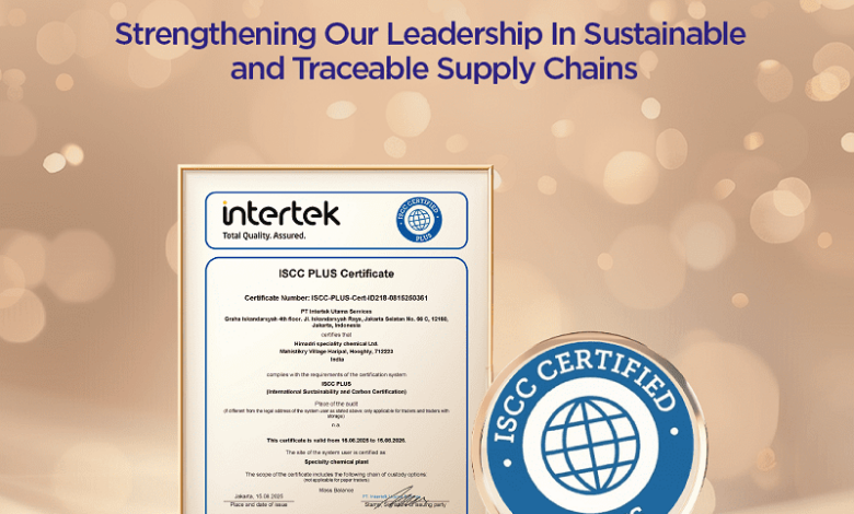 Himadri Speciality Chemical Ltd (HSCL), a global leader in speciality chemicals and advanced materials, today announced that its flagship plant in Mahistikry, Haripal, Hooghly, India, has been awarded the prestigious ISCC PLUS (International Sustainabilit and Carbon Certification). This internationally recognized certification reinforces Himadri’s leadership in embedding sustainability, transparency, and circular economy practices across its global value chain.